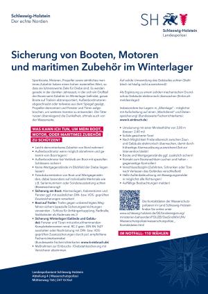 Damit nichts abhanden kommt, was Sie in der neuen Saison vermissen würden, gibt es hier noch mal wertvolle Tipps der Wasserschutzpolizei, was Sie tun können, um zum Saisonbeginn alles an Bord wiederzufinden. Download
